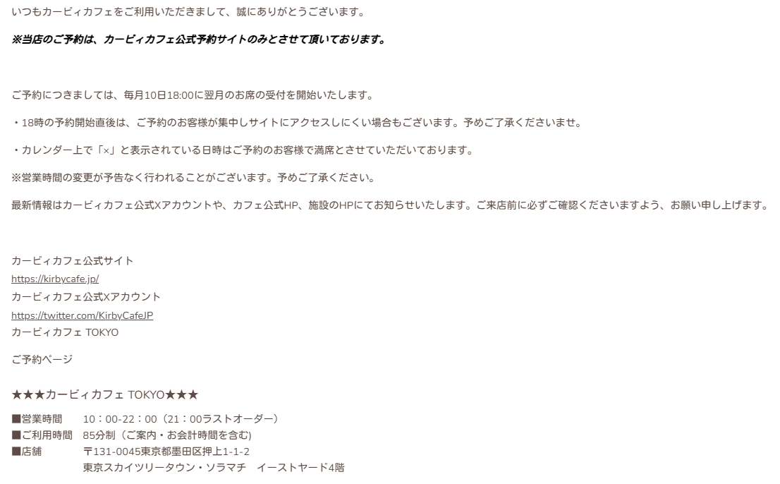 도쿄에 위치한 커비 카페 예약하는 방법을 알아보겠습니다!